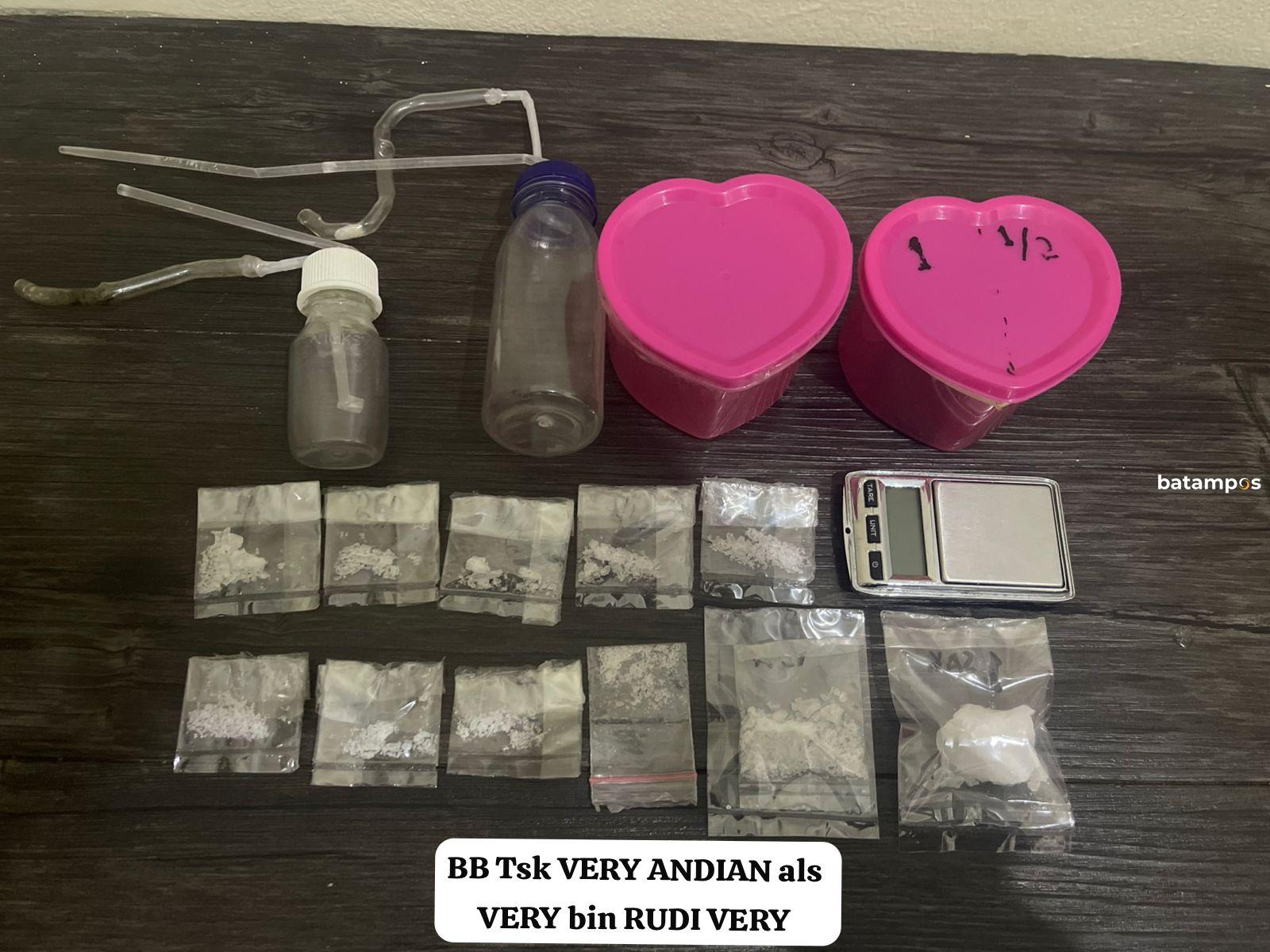 Saat penggeledahan di kamar kos Jalan Teratai 3 Blok A Nomor 7, Kelurahan Baloi Indah, polisi menemukan dua toples pink berbentuk love. Di dalamnya terdapat sembilan bungkus sabu di satu toples dan dua bungkus sabu di toples lainnya.