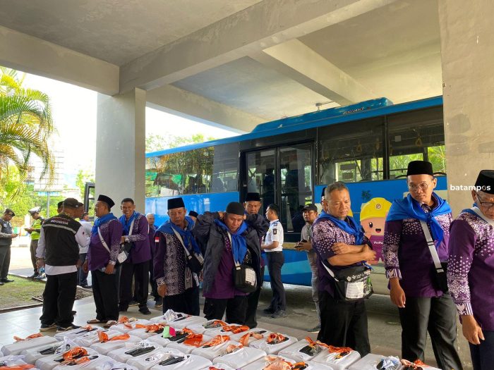 batampos -Sebanyak 445 Calon Jemaah Haji (CJH) Kloter 1 Embarkasi Batam asal Tanjungpinang, Bintan, Batam, Lingga, Anambas dan Natuna, menerima layanan One Stop Service dari petugas embarkasi, Sabtu (11/5)