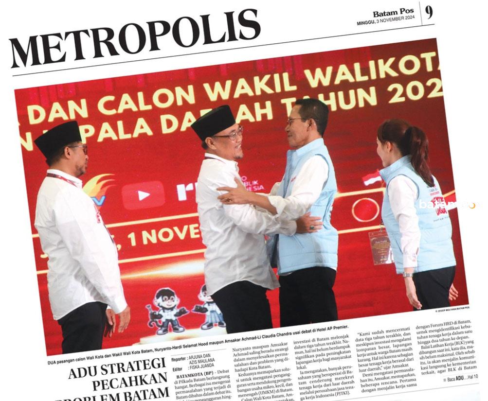 Kedua calon Wali Kota Batam, Nuryanto maupun Amsakar Achmad saling beradu strategi dalam menyelesaikan permasalahan dan problem yang dihadapi Kota Batam.