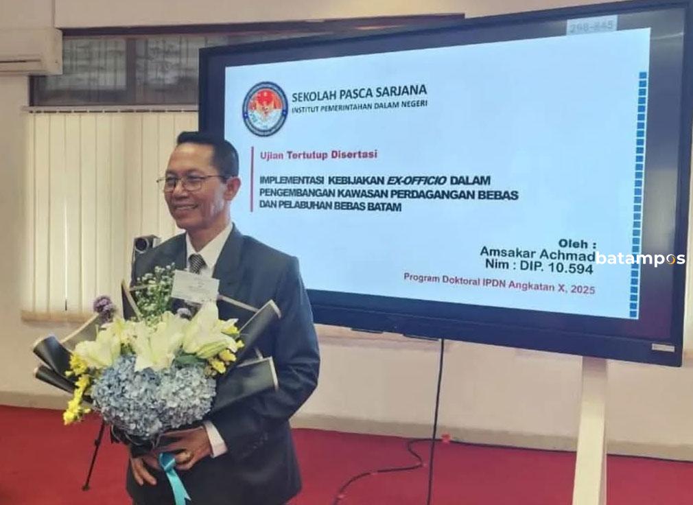 batampos – Wakil Wali Kota Batam Amsakar Achmad dinyatakan lulus pada sidang tertutup atas disertasinya dengan judul Implementasi Kebijakan Ex Officio Dalam Pengembangan Kawasan Bebas dan Pelabuhan Bebas Batam.