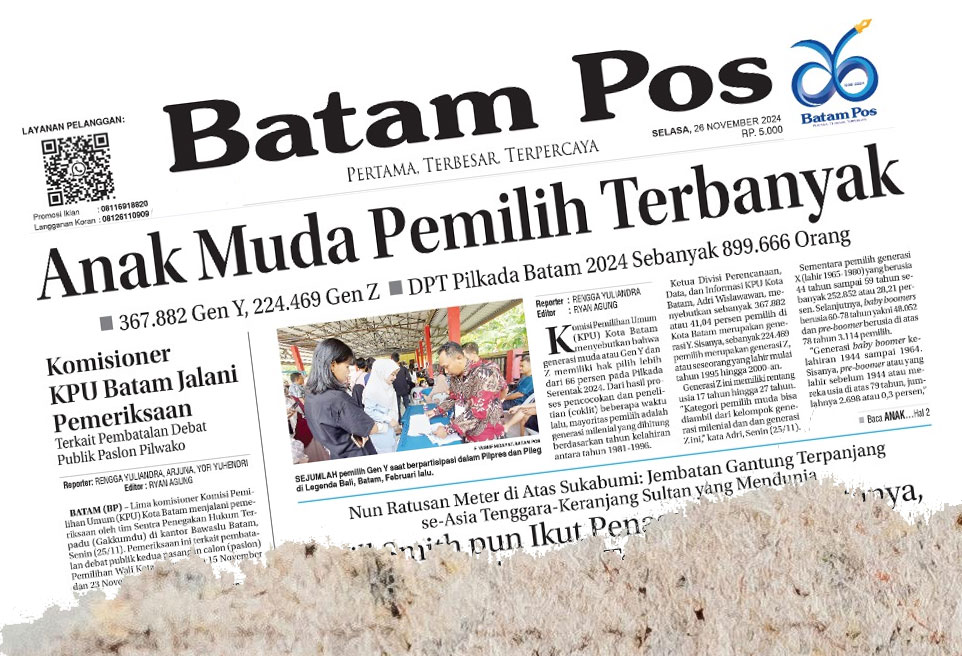 batampos – Komisi Pemilihan Umum (KPU) Kota Batam menyebutkan bahwa generasi muda atau Gen Y dan Z memiliki hak pilih lebih dari 66 persen pada Pilkada Serentak 2024. Dari hasil proses pencocokan dan penelitian (coklit) beberapa waktu lalu, mayoritas pemilih adalah generasi milenial yang dihitung berdasarkan tahun kelahiran antara tahun 1981-1996.