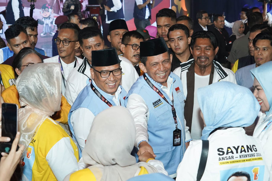Pasangan Calon Gubernur-Wakil Gubernur (cagub-wagub) Kepulauan Riau (Kepri) nomor urut 1, Ansar Ahmad-Nyanyang Haris Pratamura dikerubuti para pendukung.