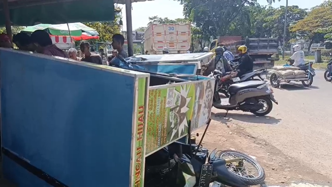 Sementara itu, satu gerobak lainnya mengalami kerusakan parah di bagian depan akibat benturan keras dari ban truk. Kondisi lokasi sempat ramai dipenuhi warga yang penasaran dengan kejadian tersebut. (*)