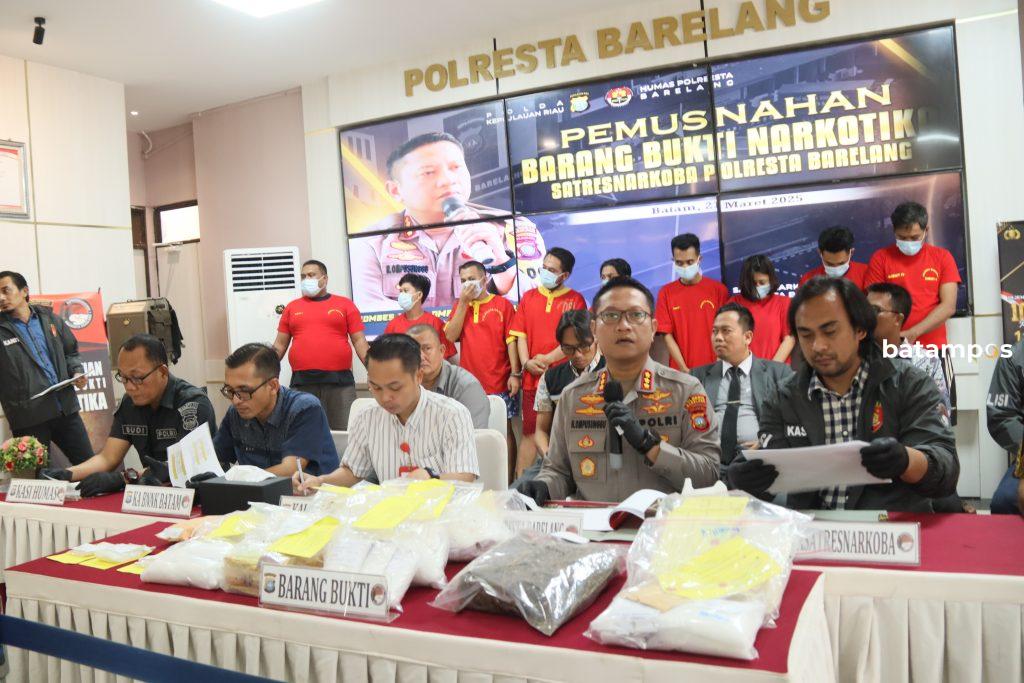 “Pemusnahan barang bukti dilaksanakan berdasarkan surat ketetapan status barang sitaan narkotika yang dikeluarkan oleh Kepala Pengadilan Negeri Batam, dan sebagian barang bukti telah disisihkan untuk keperluan pengujian laboratorium serta pembuktian di persidangan,” ujarnya.