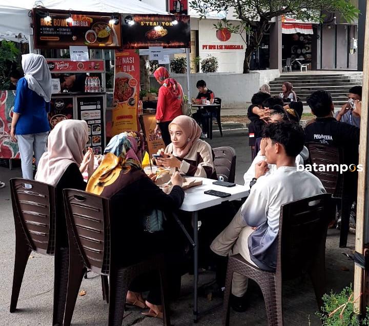 Pengunjung tampak duduk di area Bazar Kuliner Batam Career & Education Expo 2024 di Nagoya Citywalk, Sabtu (25/5/2024). Kegiatan ini berlangsung hingga Minggu (26/5/2024) besok. F Lestari Hutagaol untuk Batam Pos