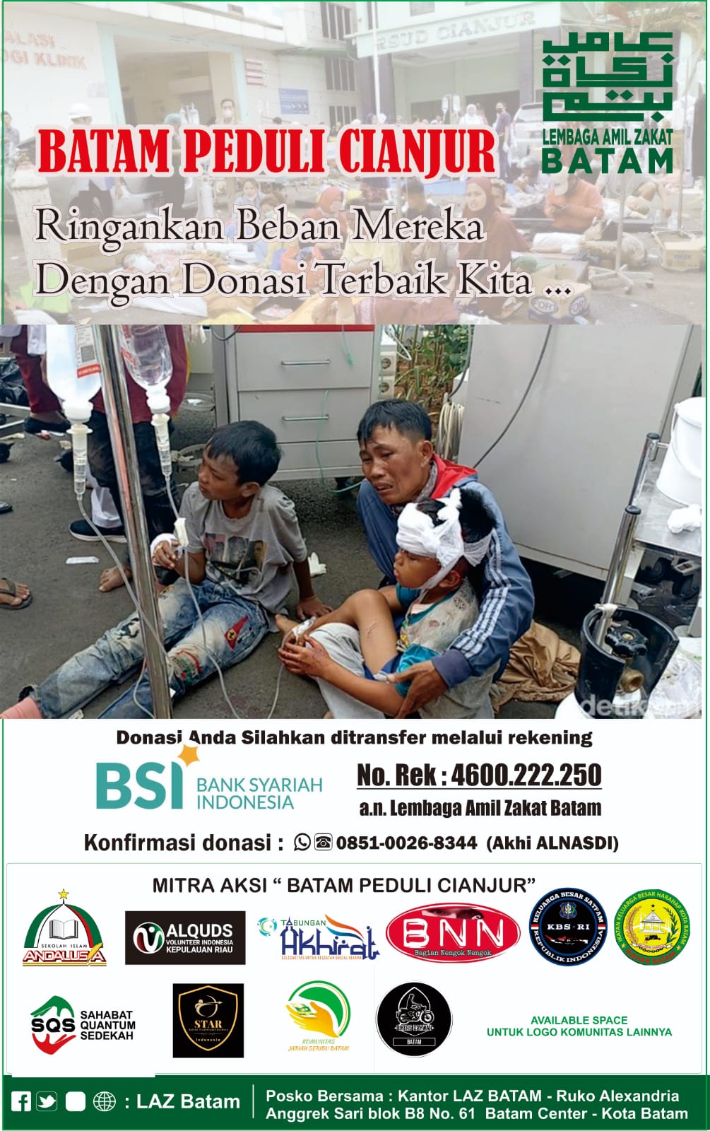 Program ini diberi nama Batam Deduli Cianjur. Direktur LAZ Batam, Syarifuddin mengatakan open donasi ini, bentuk kepedulian masyarakat Batam.