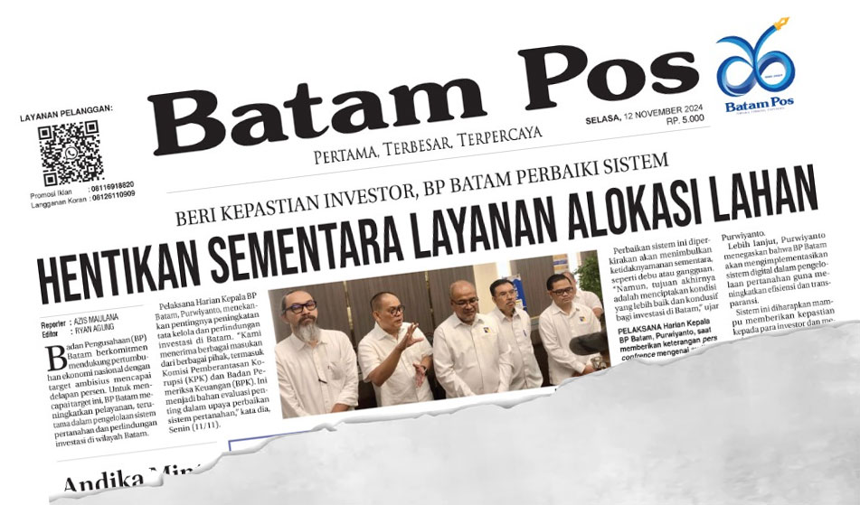 Pelaksana Harian Kepala BP Batam, Purwiyanto, menekankan pentingnya peningkatan tata kelola dan perlindungan investasi di Batam. “Kami menerima berbagai masukan dari berbagai pihak, termasuk Komisi Pemberantasan Korupsi (KPK) dan Badan Pemeriksa Keuangan (BPK). Ini menjadi bahan evaluasi penting dalam upaya perbaikan sistem pertanahan,” kata dia,