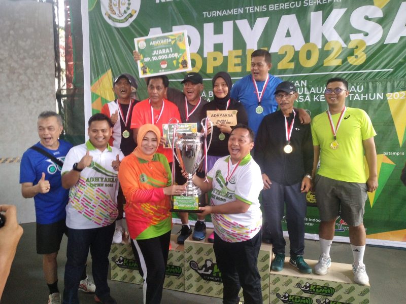 Tim Kejari Batam menerima piala tenis beregu Adhyaksa Open 2023 Kejati Kepri di Lapangan Tenis KDA 1.1, Batamcenter, Minggu (23/7).