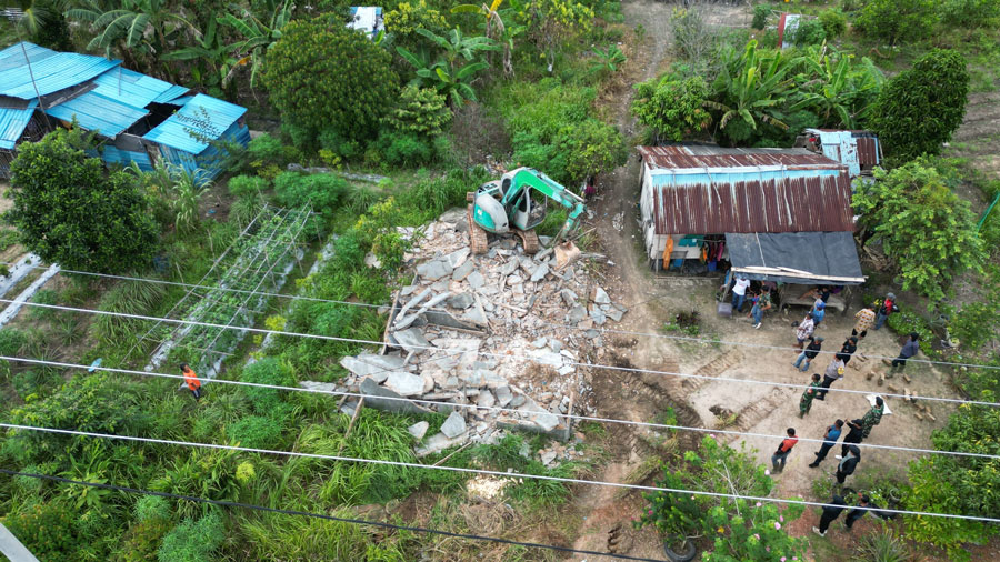 “Pembongkaran ini, juga telah mendapatkan persetujuan dari pemilik rumah yang telah bergeser dan menandatangani surat pernyataan bahwa mereka setuju untuk dilakukan pembongkaran,” ujarnya.