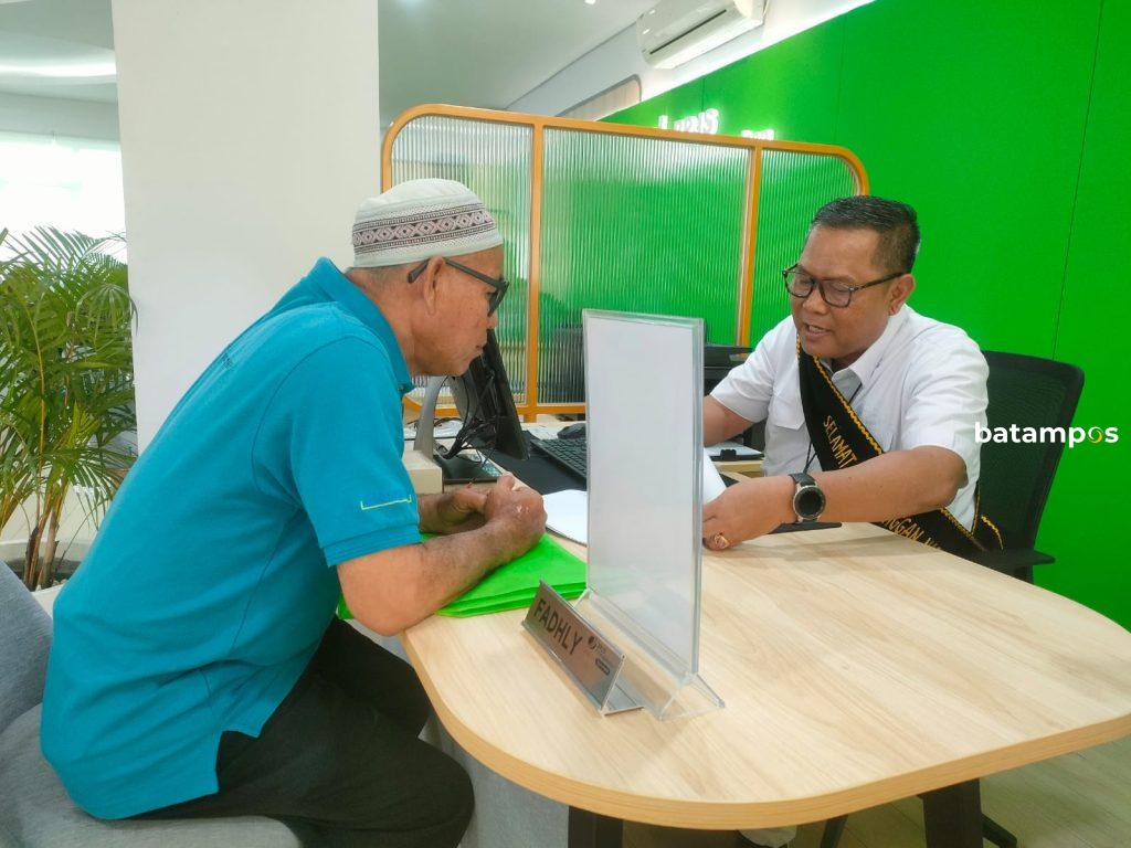 Kepala Kantor Cabang BPJAMSOSTEK Batam Nagoya, Sony Suharsono sedang melayani masyarakat dalam rangka Harpelnas 2023, Senin (4/9).