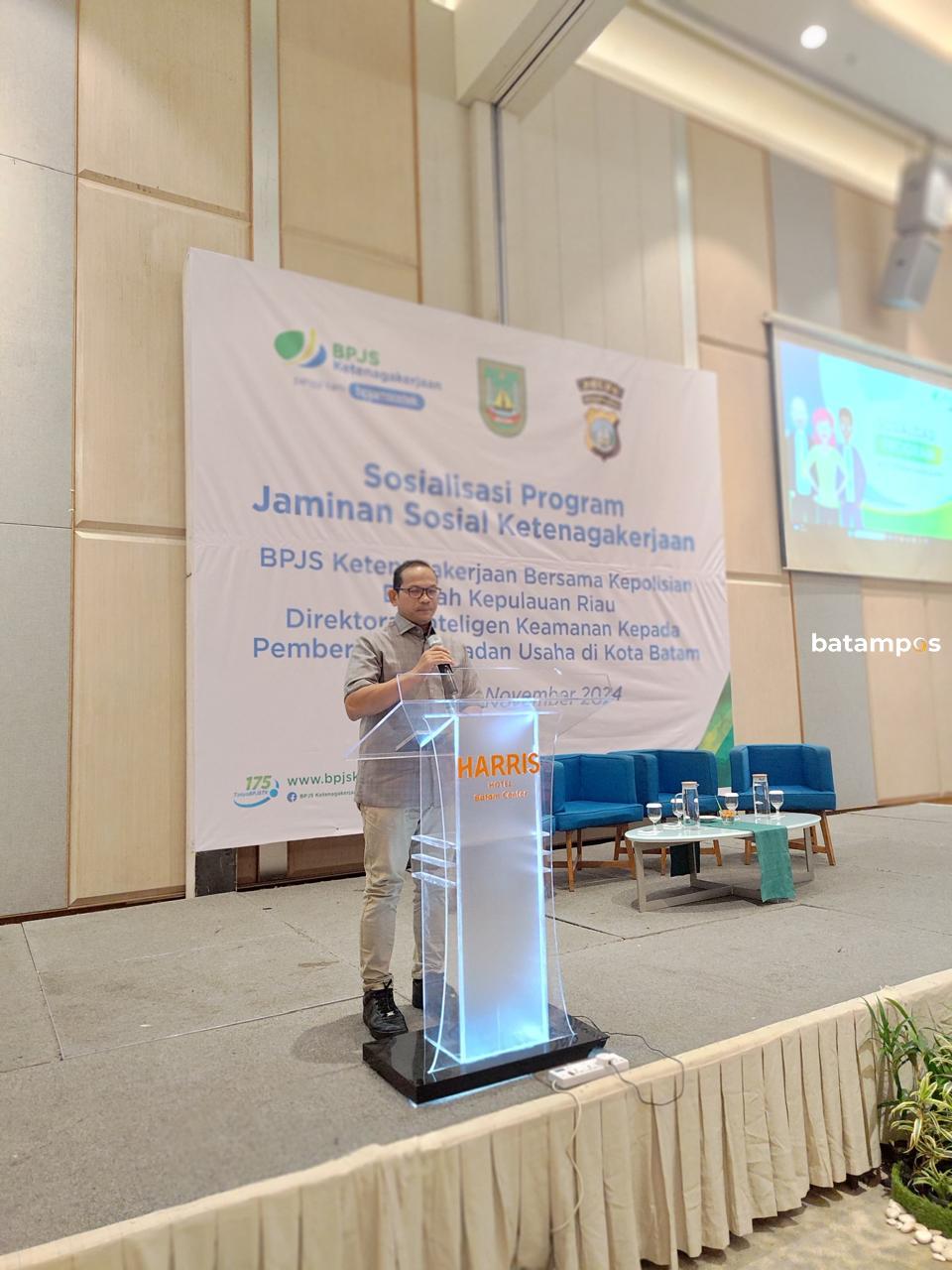 batampos – BPJS Ketenagakerjaan Cabang Nagoya Kota Batam berkolaborasi dengan Kepolisian Daerah Kepulauan Riau (Polda Kepri) menggelar sosialisasi pentingnya jaminan sosial ketenagakerjaan di Harris Hotel, Batamcentre.