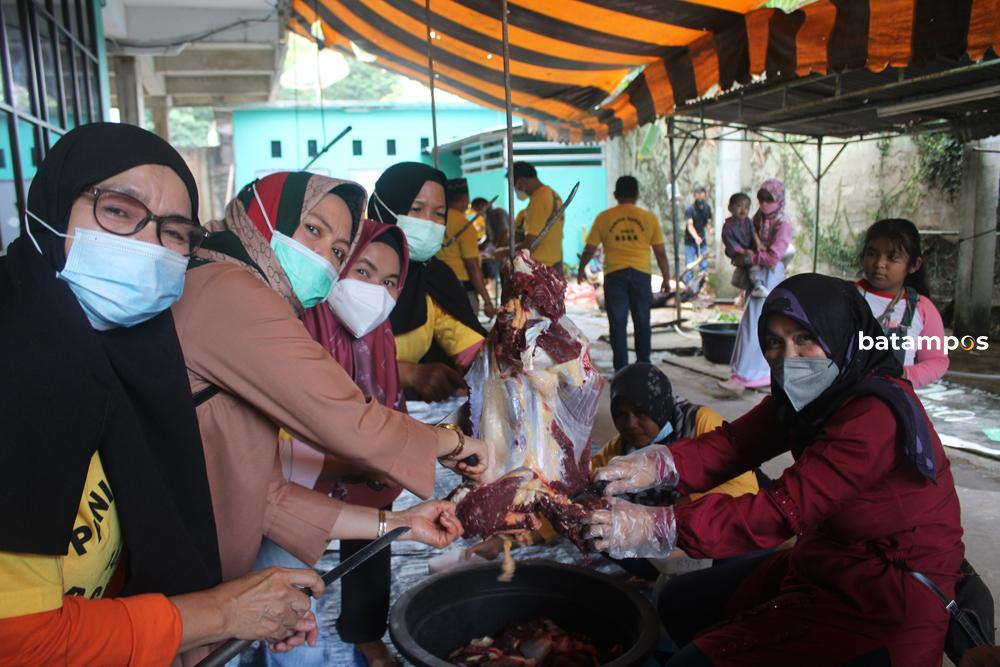 batampos – Keluarga besar Bunda Mandiri Group memusatkan penyembelihan 20 ekor sapi pada Hari Raya Idul Adha 1442 H di kampus Institut Kesehatan Mitra Bunda (IKMB), Kelurahan Kampung Pelita, Kecamatan Batuampar, Kota Batam, pada Selasa 10 Dzulhijjah 1442 Hijriah atau (20/7/2021).