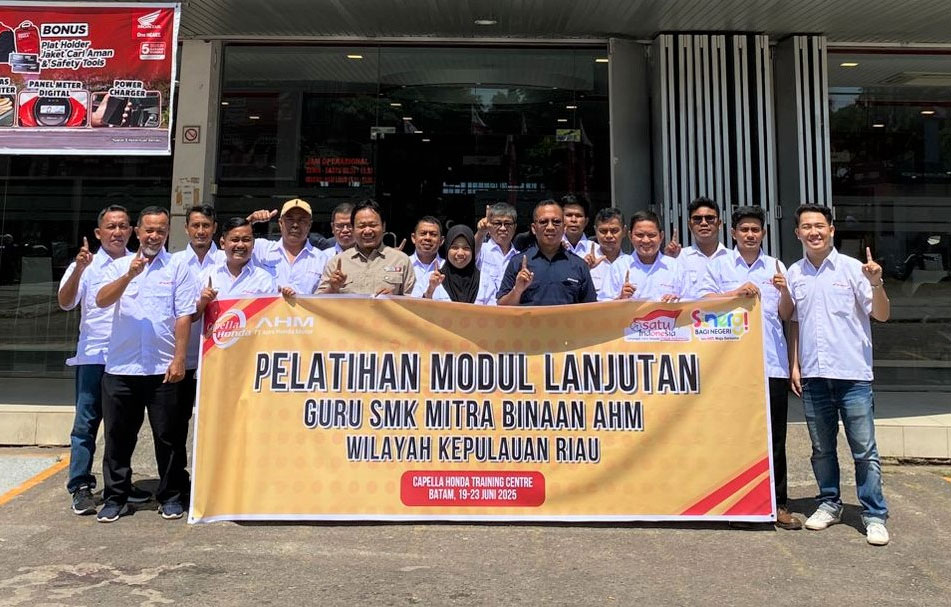 batampos – Komitmen PT Astra Honda Motor (AHM) bersama PT Capella Dinamik Nusantara (Capella Honda), Main Dealer sepeda motor Honda untuk wilayah Kepulauan Riau, dalam mendukung kemajuan pendidikan vokasi kembali diwujudkan melalui kegiatan Pelatihan dan Sertifikasi Silver Modul Lanjutan Guru. Program ini diikuti oleh 14 guru aktif dari SMK mitra binaan dan dilaksanakan selama enam hari, yang terdiri dari empat hari pelatihan dan dua hari sesi sertifikasi.