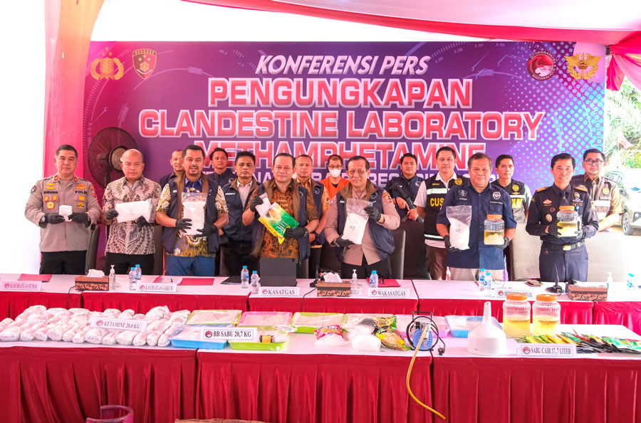 Sinergi antara Bea Cukai dan Bareskrim Polri berhasil mengungkap peredaran narkotika jaringan China dan berhasil mengamankan 2 orang tersangka, serta barang bukti berupa ketamine sebanyak 20.842,21 gram (20,8 kg), sabu kristal sebanyak 20.654,18 gram (20,7 kg), dan shabu cair sebanyak 17.650 mL (17,7L). Selain tersangka dan barang bukti, saat ini kami masih melakukan pengejaran terhadap tiga orang diduga tersangka lainnya, ungkap Syarif Hidayat. (*)