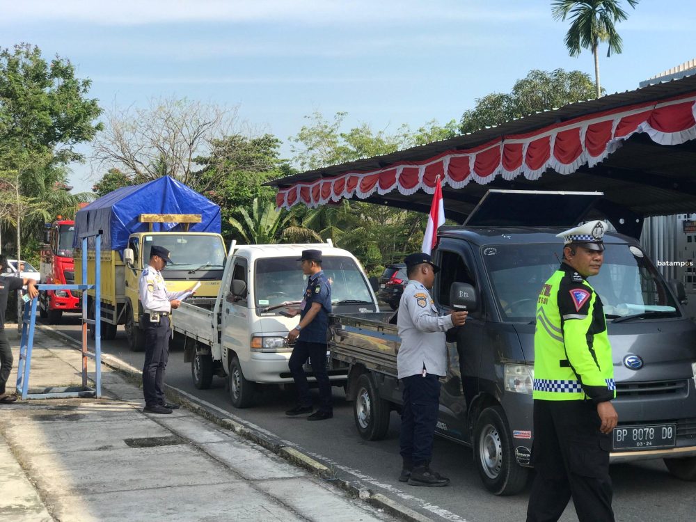 batampos – Dinas Perhubungan (Dishub) Kota Batam bersama Satlantas Polresta Barelang dan Polisi Militer TNI AD menggelar razia kendaraan angkutan barang dan umum, Rabu (27/8).
