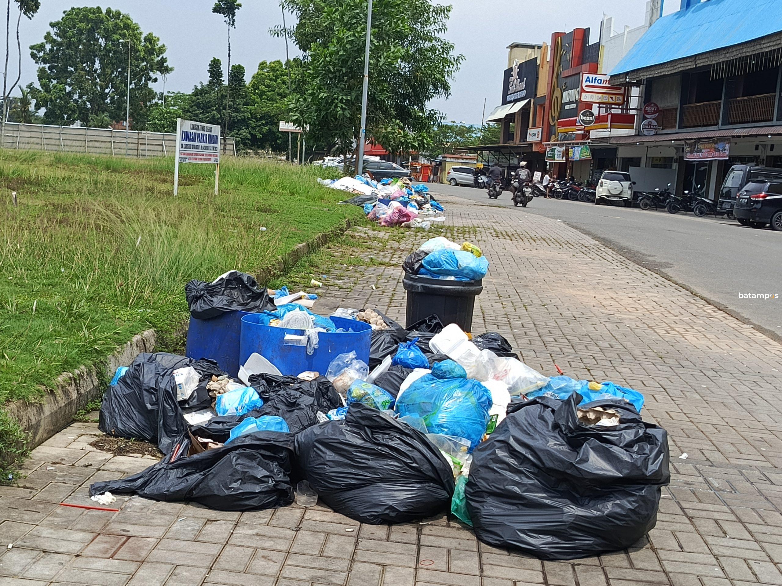 Sampah menumpuk di depan pertokoan Tunas Regency, Sagulung. Foto. Eusebius Sara/ Batam Pos