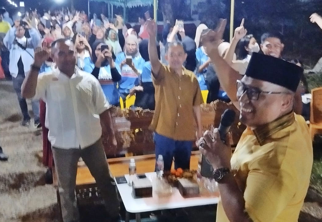 Acara kampanye yang diinisiasi oleh anggota DPRD Fraksi Golkar, Walfentus Tindaon, kian meriah ketika Nyanyang naik ke panggung dan langsung disambut antusias oleh warga.