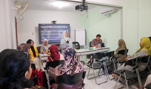 Pelatihan difokuskan pada pemanfaatan teknologi digital dan kecerdasan buatan (AI) untuk meningkatkan efektivitas pemasaran dan daya saing produk di era ekonomi digital.