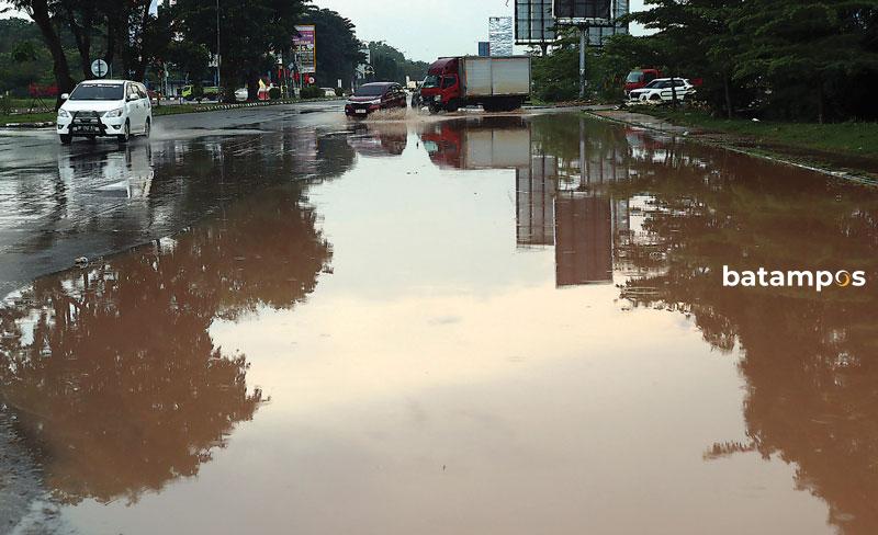 Hujan yang turun menimbulkan genangan air di Jalan Ahmad Yani dekat simpang kabil, (13/11). Genangan air disebabkan banyak faktor, salah satunya daya tampung air pada drainase yang kecil.