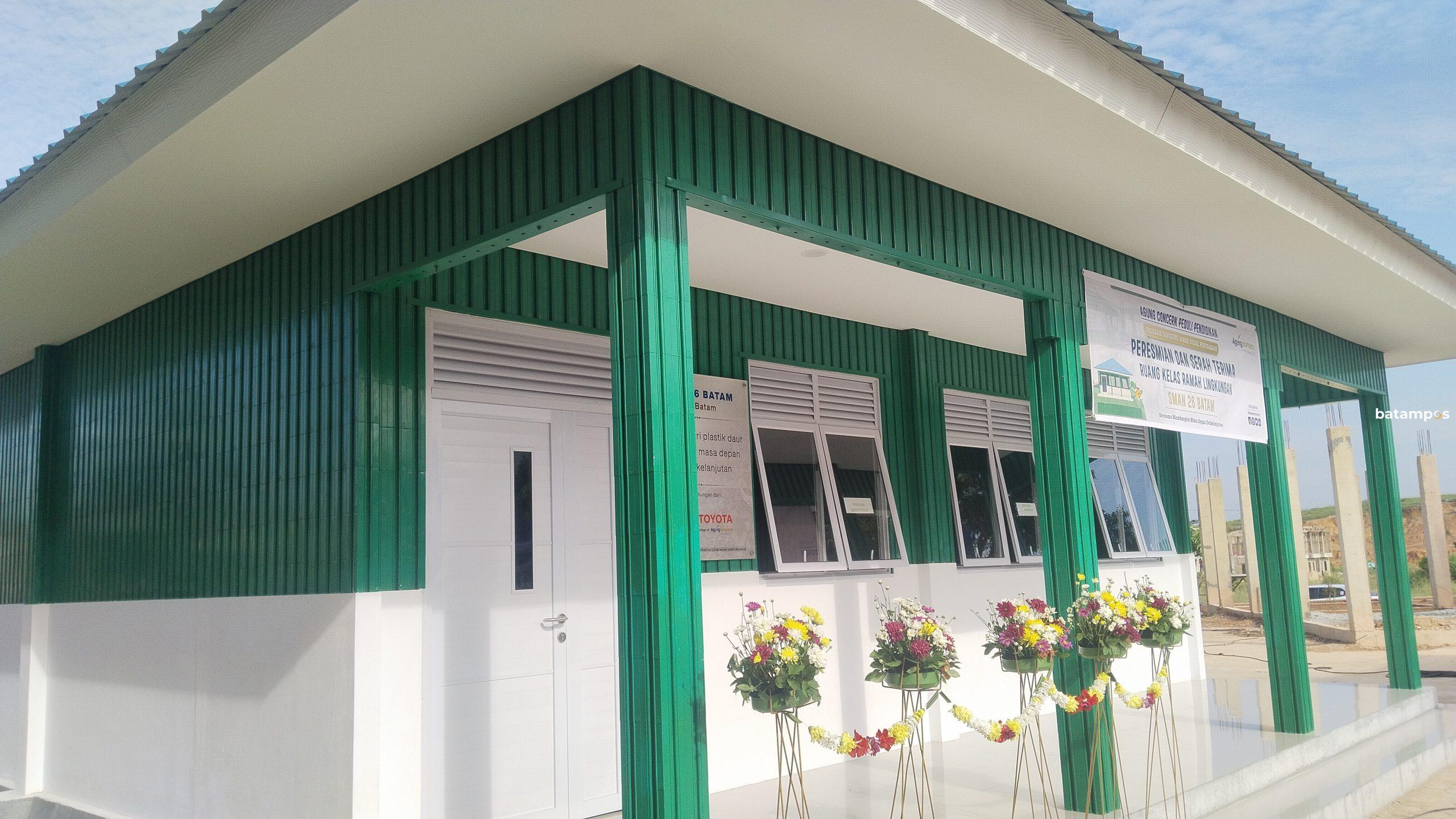 Ruang kelas ini dibangun menggunakan material inovatif berbahan dasar plastik daur ulang, hasil kolaborasi dengan mitra penyedia teknologi konstruksi berkelanjutan.