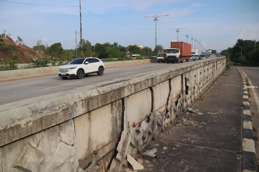 batampos– Jalan layang atau Flyover Laluan Madani sudah beroperasi selama 8 tahun atau diresmikan sejak Desember 2017 lalu. Namun, jembatan dengan biaya pembangunan mencapai Rp180 Miliar tersebut kini tak terawat.