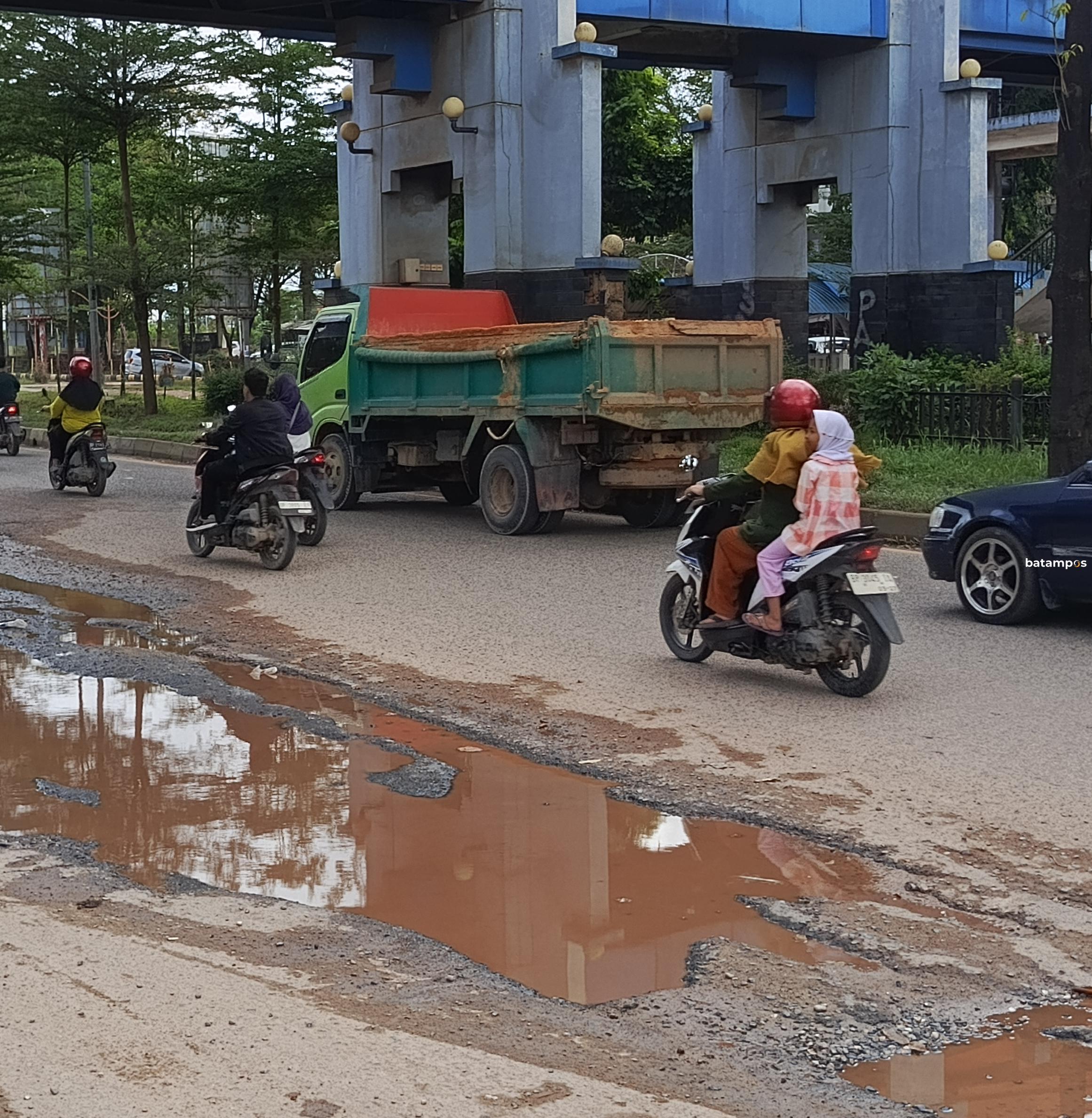 Salah satu titik terparah berada di bawah jembatan penyeberangan orang (JPO) depan Sentosa Perdana (SP) Plaza Sagulung. Di lokasi ini, genangan air yang tak kunjung surut membuat aspal terkelupas dan membentuk lubang-lubang besar. Setiap hari, lubang-lubang ini digilas kendaraan berat dan menyebabkan kerusakan semakin meluas.