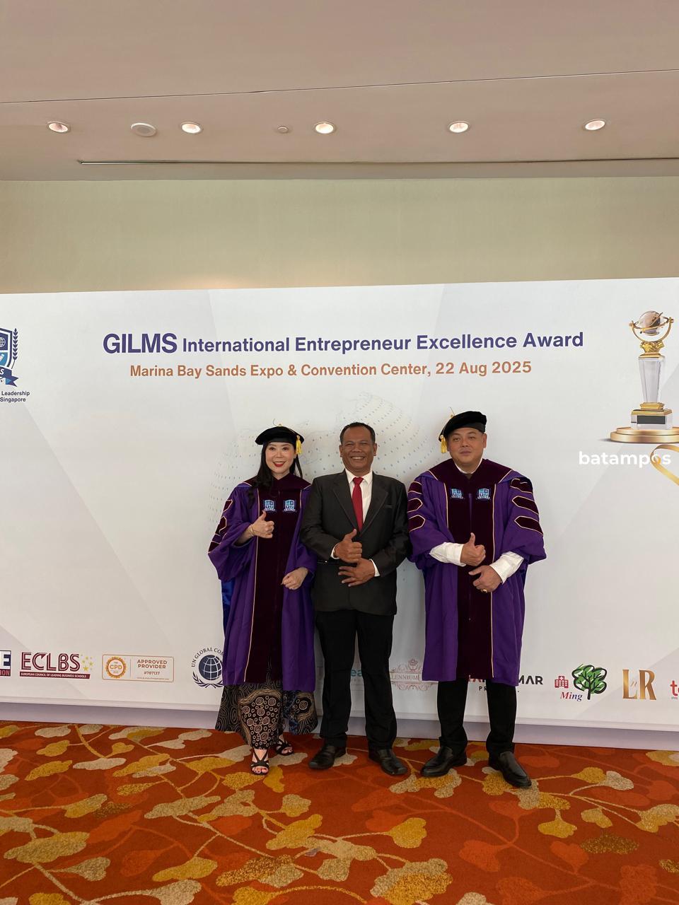 batampos-Mandala Bay Sands, Singapura, Jumat, 22 Agustus 2025 menjadi saksi sejarah penganugerahan gelar kehormatan internasional bergengsi dari Global Institute of Leadership and Management (GILMS), Singapore.
