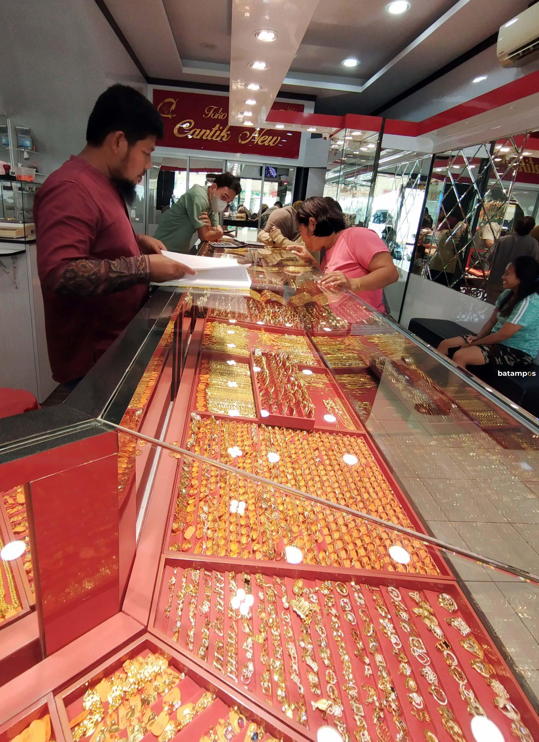 batampos – Toko perhiasan emas di Batuaji dan Sagulung ramai dengan pengunjung sepanjang, Senin (25/3). Banyak ibu-ibu yang datang untuk menjual perhiasan nya untuk persiapan Lebaran.