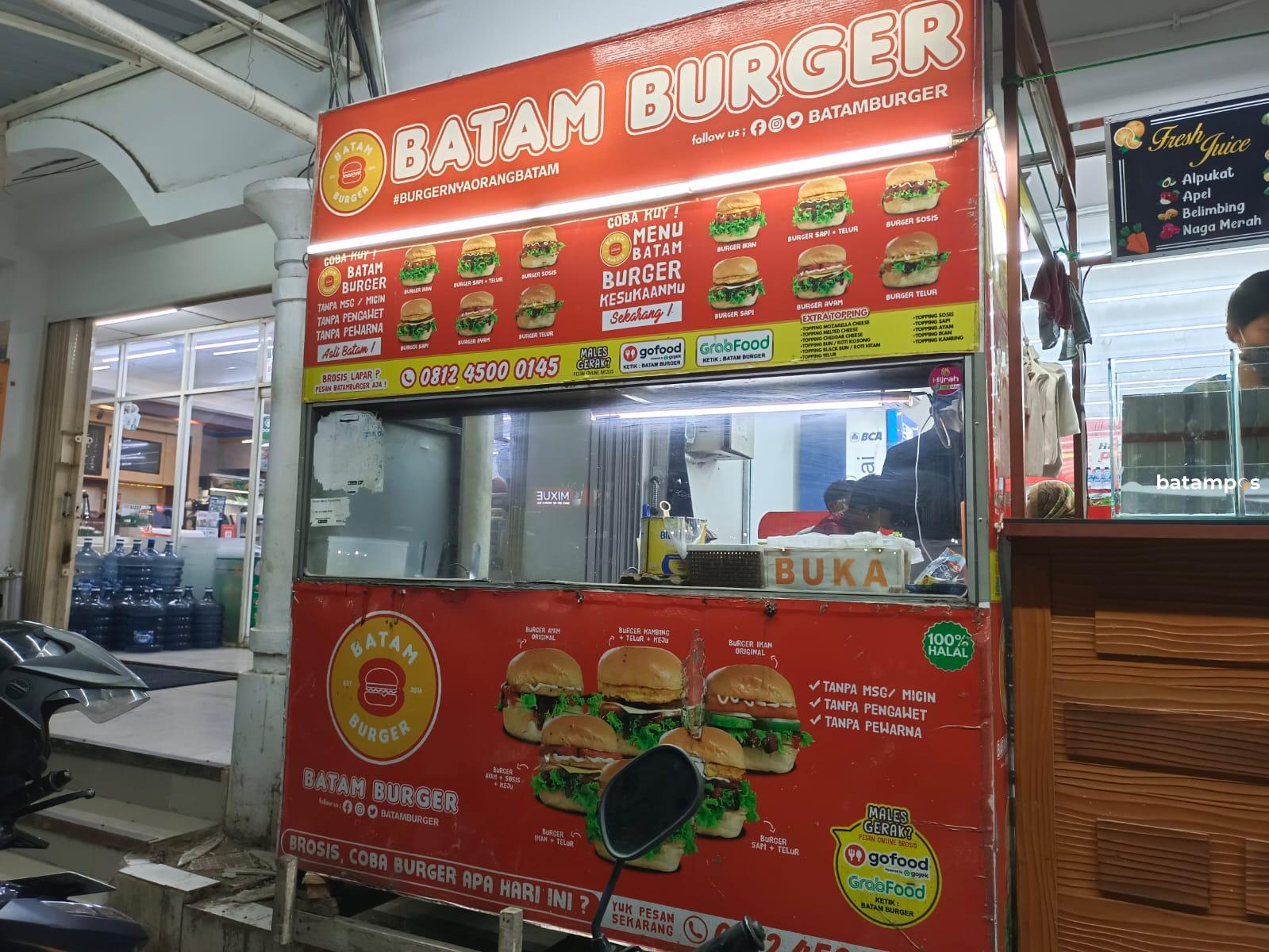 TEMPAT makan burger lezat dan tentu saja relatif murah, salah satunya adalah Batam Burger. Lokasinya di Komplek Ruko Citra Mas, Green Land, Batam Centre. Di gerai Batam Burger ini, pelanggan dan calon pelanggan akan mendapatkan suguhan burger lezat dengan harga mulai dari Rp 11 ribu, Rp 17 ribu, Rp 21 ribu hingga  Rp 37 ribu per porsi. Tergantung selera.