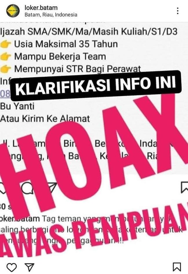 Pada kenyataannya, untuk mencari lapangan kerja di Kota Batam saat ini cukup sulit. Hal itu ternyata banyak dimanfaatkan oleh orang-orang yang tidak bertanggungjawab dengan menginformasikan pengumuman lowongan kerja.