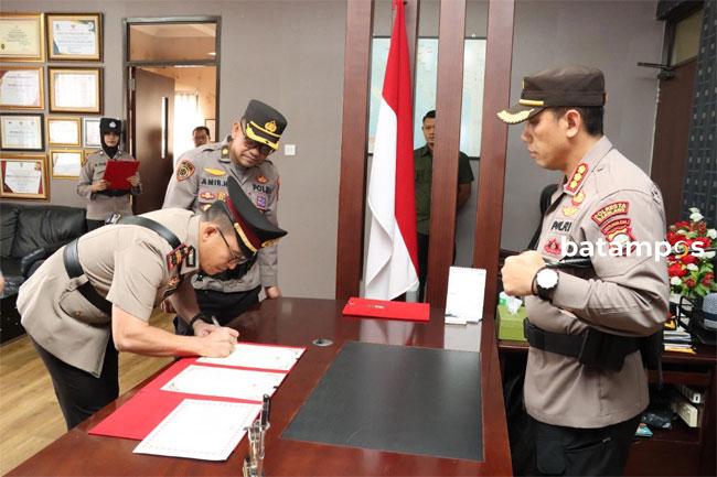 batampos – Kapolsek Kawasan Pelabuhan (KKP) Batam resmi berganti. Pergantian jabatan ini ditandai dengan pelantikan dan serah terima jabatan (jabatan) yang dipimpin Kapolresta Barelang, Kombes Nugroho Tri Nuryanto di Mapolresta Barelang, Senin (16/1) pagi.
