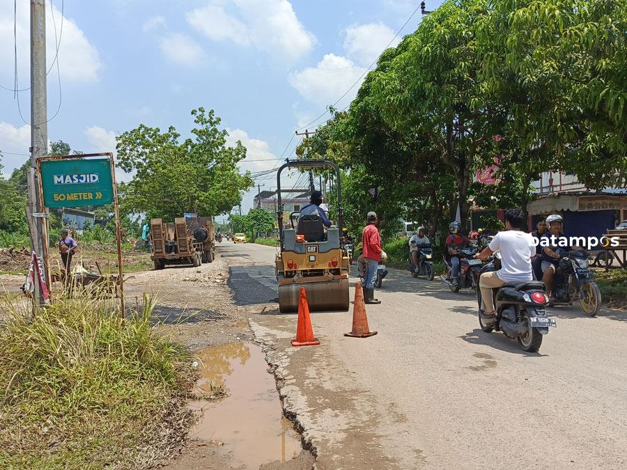 Pengerjaan tahap awal dimulai dengan proses penimbunan lubang-lubang besar yang tersebar di sepanjang jalan. Setelah itu, dilakukan pelapisan ulang dengan aspal tambal guna memperbaiki permukaan jalan agar kembali rata dan aman dilalui.