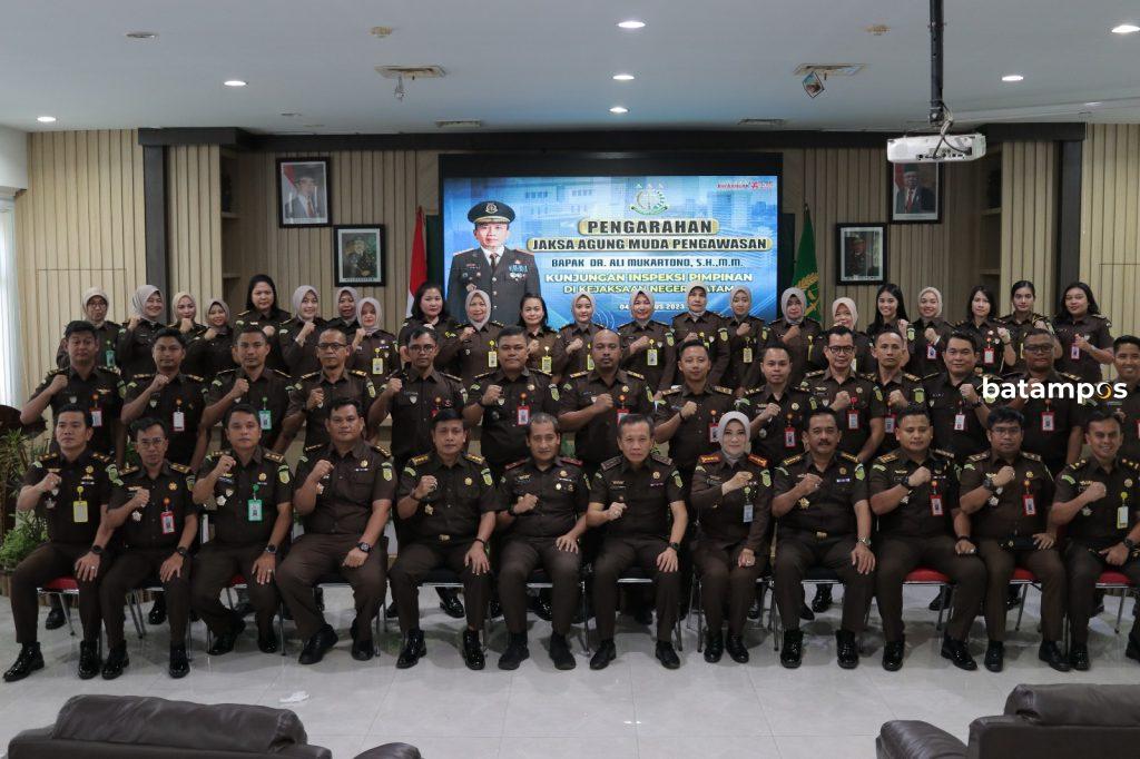 Jamwas Kejagung RI, Ali Murkatono didampingi Kajari Batam, Herlina Setyorini, berfoto bersama tim Kejagung RI dan Jajaran Kajari Batam.