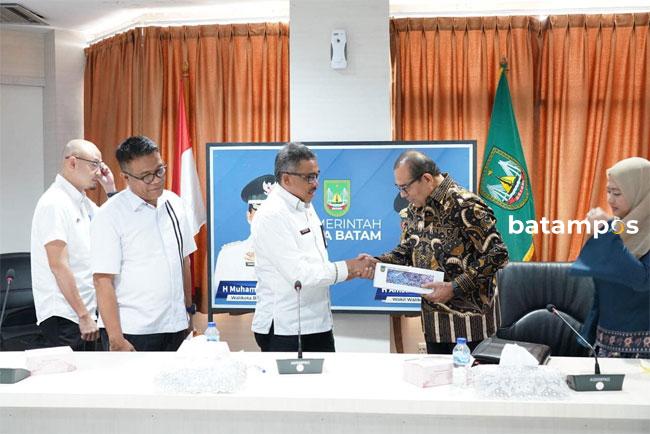 batampos – Sekretaris Daerah (Sekda) Kota Batam, Jefridin, menerima kunjungan dari Centre for Indonesia–Malaysia–Thailand Growth Triangle Subregional Cooperation (CIMT) ke Kota Batam terkait projek Kota Hijau IMT- GT, di Kantor Wali Kota Batam, Rabu (7/6/2023).