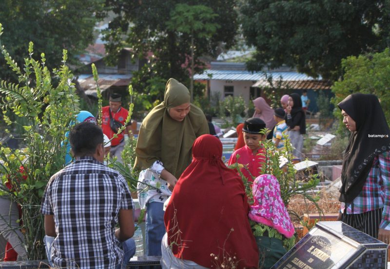 batampos – Taman Pemakaman Umum (TPU) di Kelurahaan Sambau, Nongsa dipadati peziarah, Rabu (22/3). Peziarah tak lain merupakan sanak keluarga atau teman dari yang dikubur di TPU tersebut.