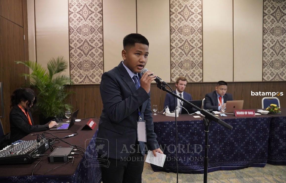 Di sebuah ruang sidang bergaya internasional di Bali, deretan bendera kecil dari berbagai negara berjajar rapi di atas meja. Suara-suara dari berbagai bahasa bergantian memenuhi ruangan, membahas isu-isu dunia dengan semangat. Di antara ratusan peserta muda itu, berdiri seorang remaja asal Batam, tenang, percaya diri, dan berbicara dalam bahasa Inggris yang mengalir fasih.
