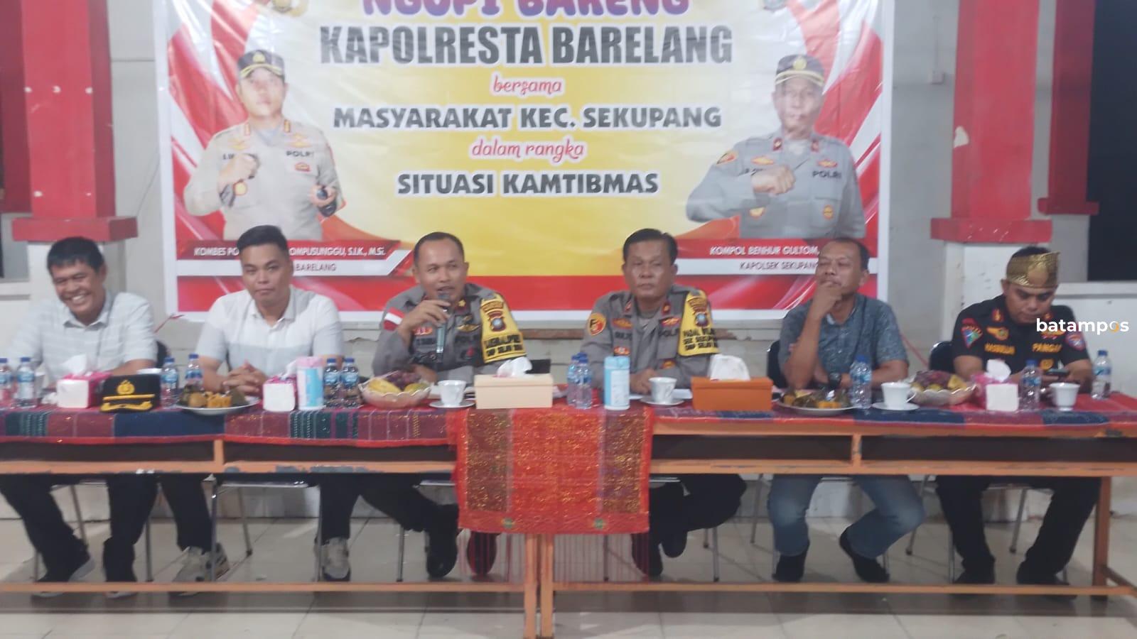 batampos – Kapolresta Barelang Kombes Pol H. Ompusunggu, yang diwakili oleh Kabagops Polresta Barelang Kompol Z.A. Cristopher Tamba, menggelar kegiatan Ngopi Bareng Kapolresta Barelang bersama Masyarakat Kecamatan Sekupang di Gedung Pertemuan RW 007 Tiban Lama, Sekupang, Rabu (13/11) malam. Acara ini dihadiri oleh lebih dari 300 orang, termasuk tokoh masyarakat, jajaran kepolisian, serta warga setempat.