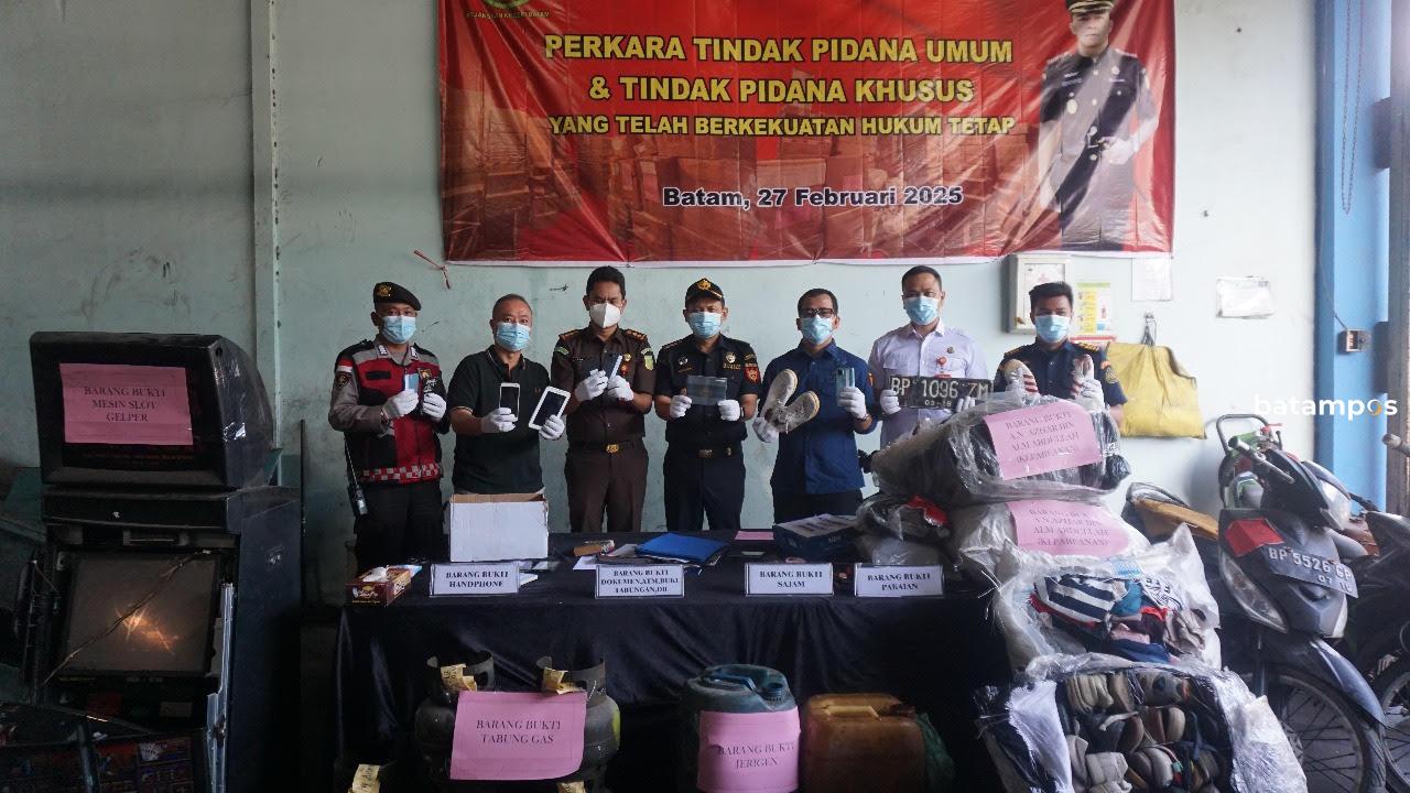 Barang bukti yang dimusnahkan terdiri atas dua kategori, yakni dari tindak pidana umum dan tindak pidana khusus. Diantaranya barang bukti dari pidana umum, 37 unit mesin gelper, 9 alat tangkap jaring pair trawl, 253 lembar kaca pengaman, 3 dus pakaian, dokumen, senjata tajam hingga puluhan ponsel dari beberapa perkara berbeda, seperti pencurian, TPPO, PMI, penganiayaan hingga migas.