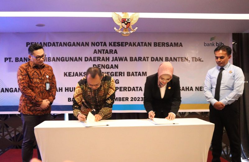 Kemarin, Kejari Batam menandatangani nota kesepakatan dengan PT Bank Pembangunan Daerah Jawa Barat dan Banten, Tbk (bank bjb) di Hotel Santika, Batam Center. Kesepakatan itu mengenai penanganan masalah hukum bidang perdata dan tata usaha negara yang menjadi wewenang Satunya Kejari Batam.