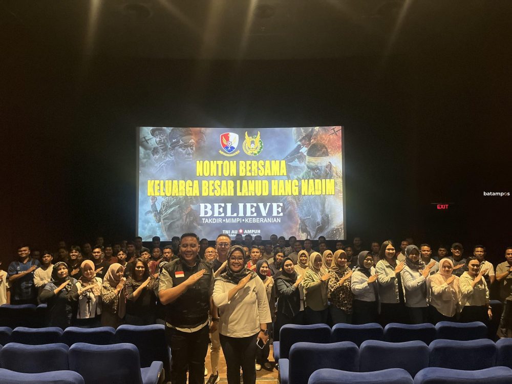 batampos – Keluarga besar Lanud Hang Nadim Batam menggelar nonton bareng (nobar) film Believe – Faith, Dream, and Courage (Takdir, Mimpi, Keberanian) di Mega Mall Batam Center, Kamis (24/7). Film Believe merupakan adaptasi buku biografi Jenderal TNI Agus Subiyanto berjudul Believe – Faith, Dream, and Courage yang disusun oleh Valent Hartadi.