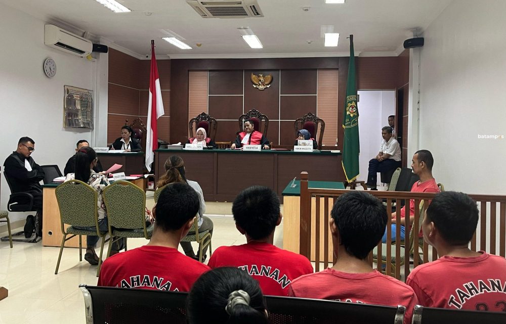S dan rekannya sebagai saksi saat memberi keterangan dalam sidang di Pengadilan Negeri Batam, Senin (12/8). F.Yashinta