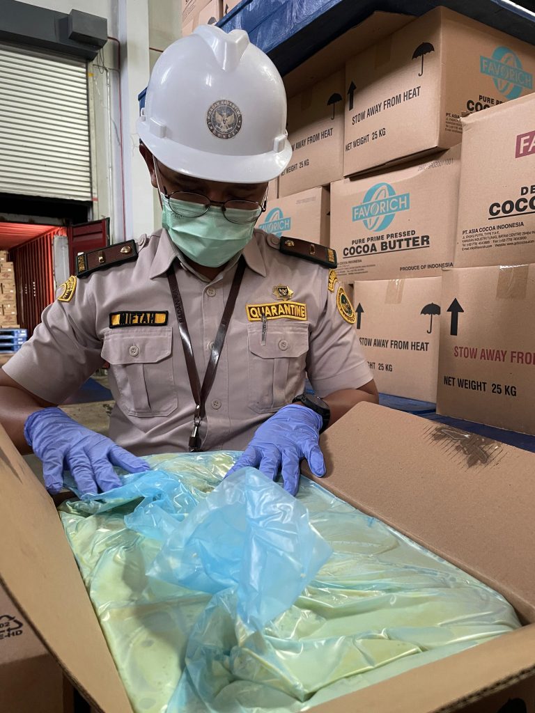 batampos – Badan Karantina Indonesia (Barantin) melalui Balai Karantina Hewan, Ikan, dan Tumbuhan Kepri melakukan pemeriksaan terhadap 540 ton olahan kakao yang akan diekspor ke Prancis, Kanada, dan Amerika Serikat.