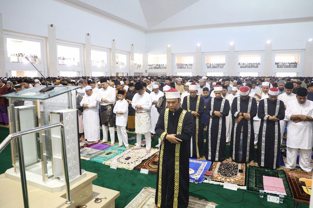Suasana di pagi itu begitu khusyu’. ⁠Ribuan masyarakat muslim dari seluruh penjuru Kota Batam turut memadati masjid terbesar di regional Sumatera tersebut, dan dengan khidmat mengikuti seluruh rangkaian ibadah.