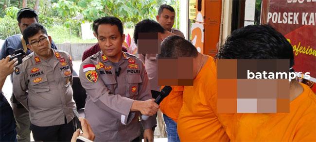 Kapolsek KKP, AKP Awal Syaban Harahap (pegang mik) saat menanyai salah seorang tersangka. Foto: Rengga Yuliandra/Batam Pos