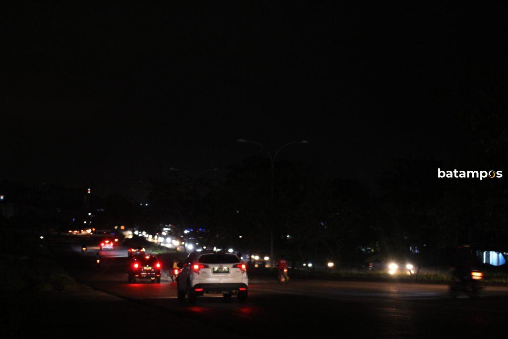 Lampu penerangan jalan umum (PJU) padam di sepanjang Jalan Hang Tuah, tepatnya menuju ke Bandara Hang Nadim.