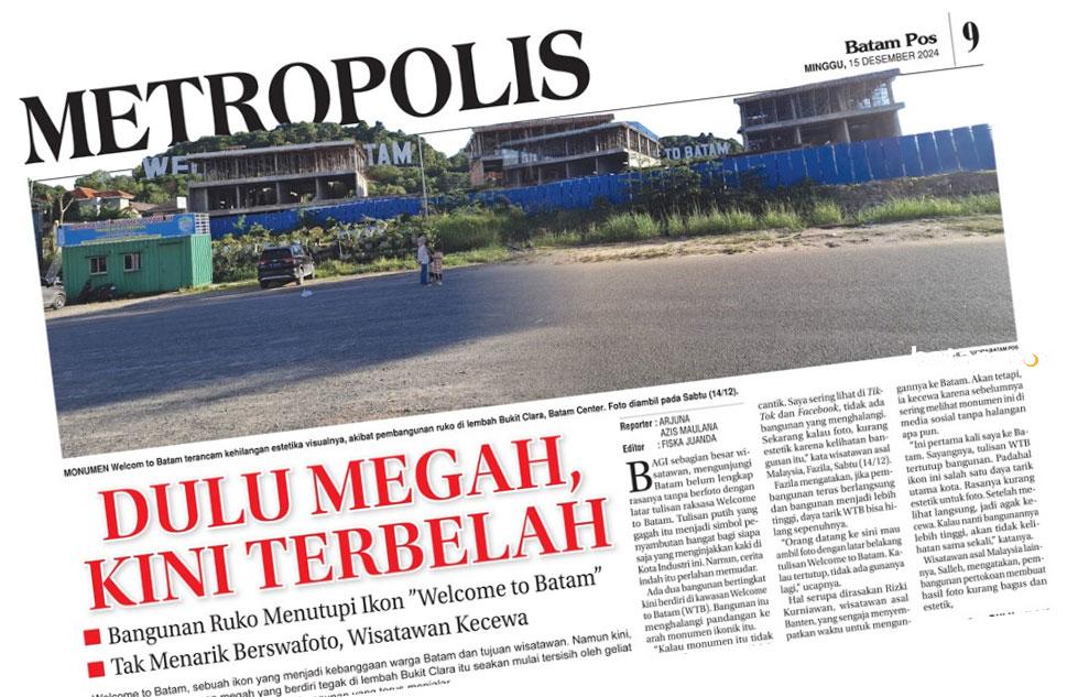 Ikon “Welcome to Batam” (WTB) di Bukit Clara yang telah menjadi simbol Kota Batam selama bertahun-tahun kini terancam oleh pembangunan gedung di sekitarnya.