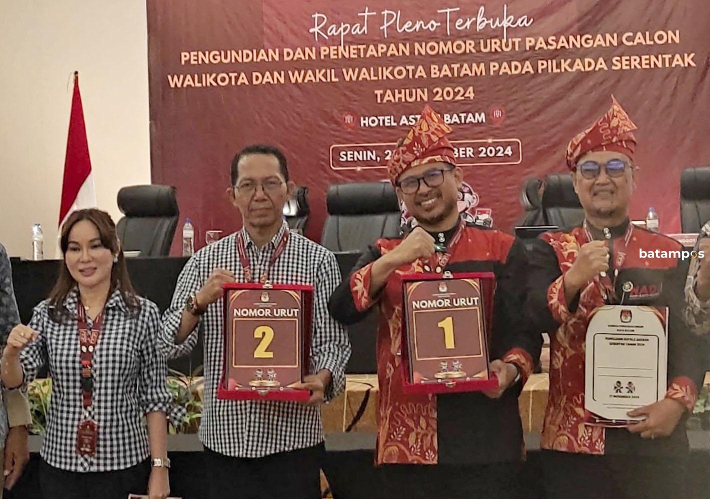 batampos – Pasangan calon Wali Kota dan Wakil Wali Kota Batam, Nuryanto-Hardi Selamat Hood (NADI) dan Amsakar Achmad-Li Claudia Chandra (ASLI), telah melaksanakan proses pencabutan nomor urut.