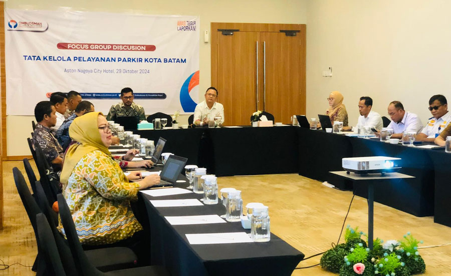 batampos – Ombudsman RI perwakilan Kepri, melakukan Focus Group Discussion (FGD) terkait permasalahan pelayanan parkir di Batam. Kegiatan berlangsung di Ballroom Aston Hotel Thamrin City, Batam. Selasa (29/10).