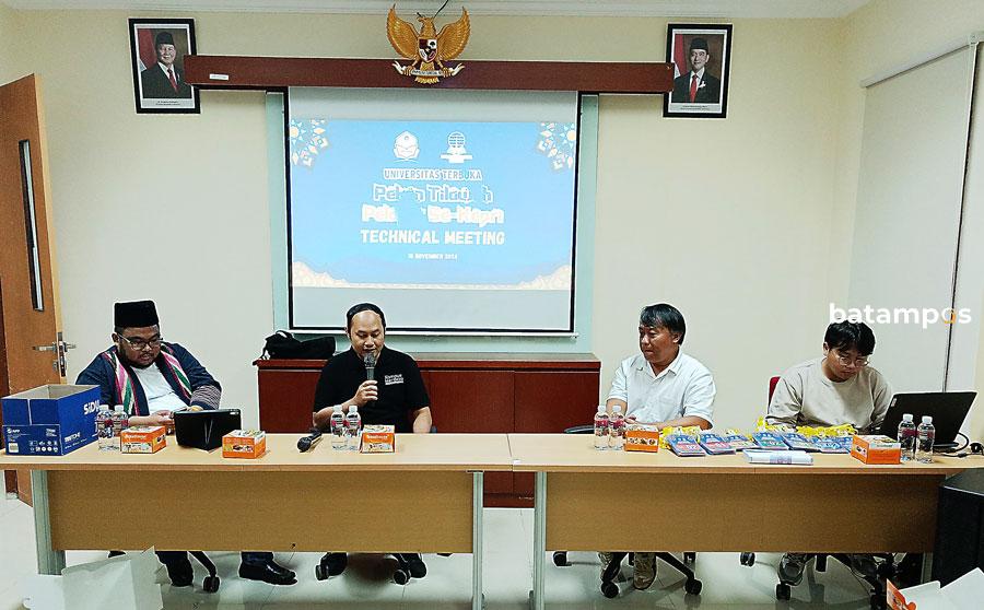 Direktur UT Batam, Angga Sucitra Hendrayana, M.Si, memberikan sambutan di acara Technical Meeting Pekan Tilawah Pelajar se-Kepri di Kampus Universitas Terbuka (UT) Batam, Senin (18/11).
