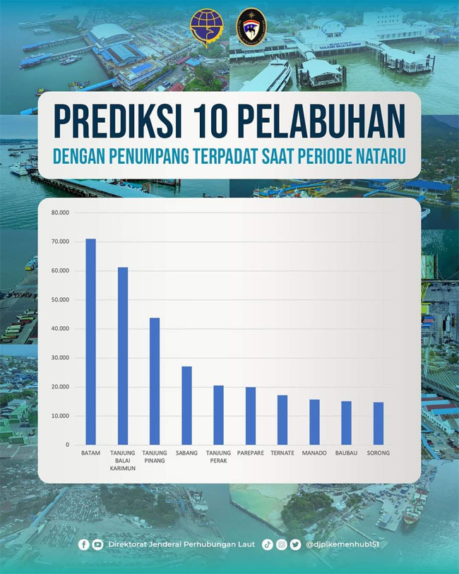 Sementara itu diurutan kedua yakni Tanjungbalai Karimun. Ditjen Hubla memprediksi jumlah penumpang di Tanjungbalai karimun mencapai 60 ribuan